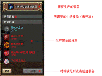 - 当在游戏中打怪获得“装备设计图”后,可以按照设计图上的需求来收集相应材料,当需要满足时便可以自己生产出设计图上相应的装备而不用通过NPC。
