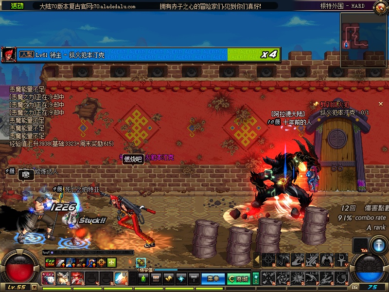 就这样费劲的打了5-6次,最后神奇的发现,泰拉石够了…靠,复仇者是后妈设计的职业呀,凭毛线剑魂就刷的过,而且仅仅比我高2级。